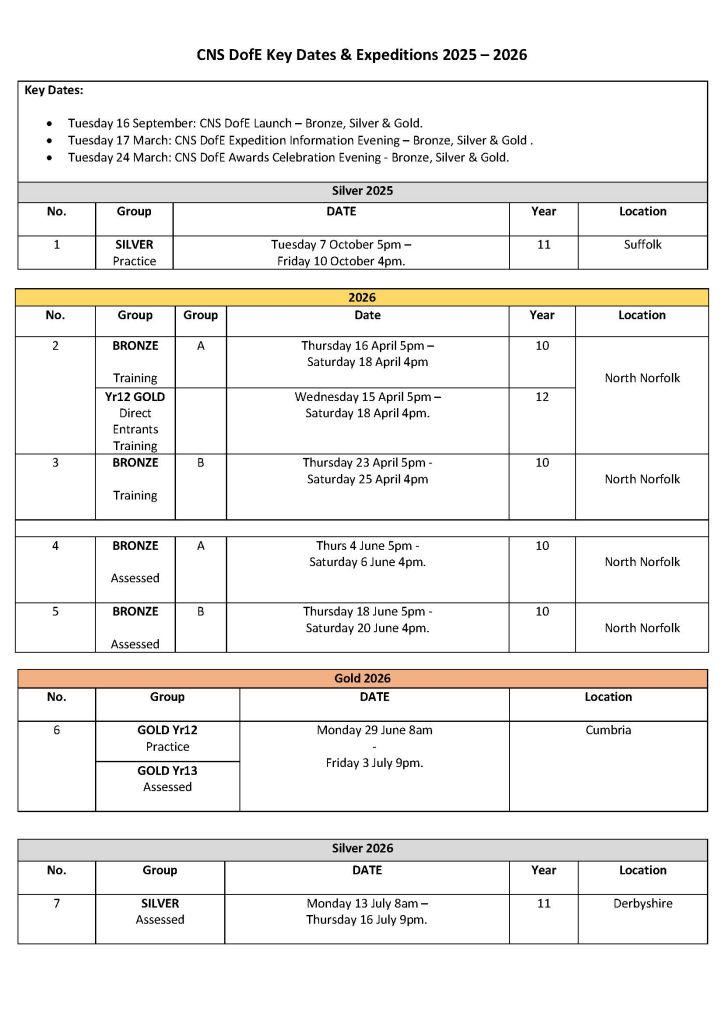 CNSDofE Twitter site: CNS_DofE