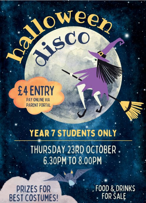 Get ready for a spook-tacular night at the Year 7 Halloween Disco!